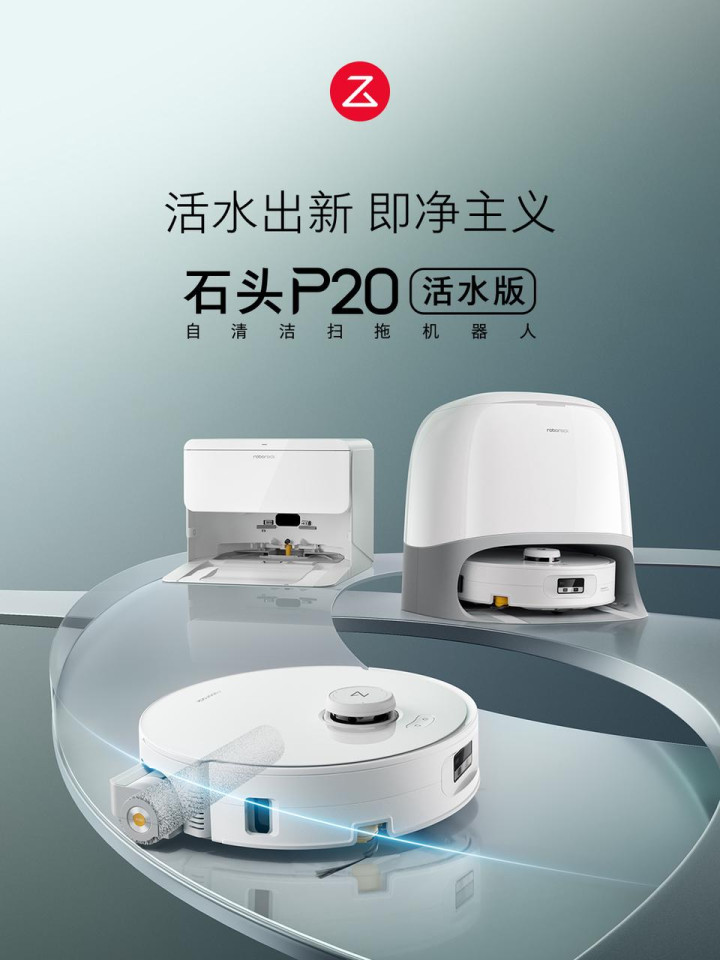 行业已迈入“精细化清洁闭环”阶段。旗舰产品普遍构建 “扫-拖-换-洗-烘-上下水”完整闭环。自动换拖布、热水洗、热风烘干成为旗舰标配。石头科技推出的P20 Ultra Plus实现三重热力清洁,具备100℃高温除菌、60℃热水溶污和55℃热风烘干功能,从清洁到自清洁,不断为消费者带来全方位领先的极致体验。活水洗地技术也成为行业进化的关键方向。石头P20活水版采用行业首创的全域增压活水洗地,通过8孔均匀喷淋、强压速转净洗、恒压刮条刮污以及涡流虹吸瞬吸,实现拖布在工作过程中的实时自清洁。